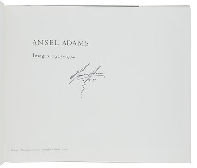 [FINE PRESS & LIVRE D'ARTISTE]. -- ADAMS, Ansel (1902-1984). Images 1923-1974. Boston: New York Graphic Society, 1974.