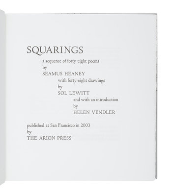 [FINE PRESS & LIVRE D'ARTISTE]. -- [ARION PRESS]. LEWITT, Sol (1928-2007), illustrator. – HEANEY, Seamus (1939-2013). Squarings, a sequence of forty-eight poems. San Francisco: The Arion Press, 2003.
