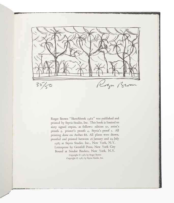 [FINE PRESS & LIVRE D'ARTISTE]. -- BROWN, Roger (1941-1997). Roger Brown Sketchbook 1982. New York: Styria Studios, 1983.