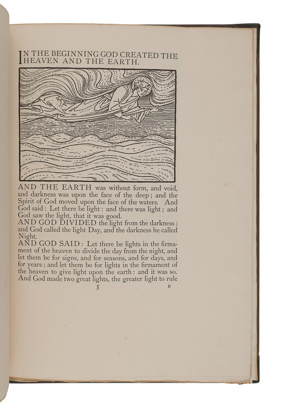 FIRST EDITION, including the first publication of the 25 woodcuts Burne-Jones created for Biblia Innocentium, written by John William Mackail (Burne-Jones's son-in-law) and published by the Kelmscott Press in 1892. Burne-Jones was to complete 250 woodcuts for the work, but they were never completed.