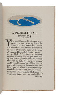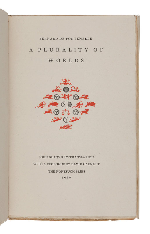 [FINE PRESS & LIVRE D'ARTISTE]. -- [NONESUCH PRESS]. FONTENELLE, Bernard le Bovier de (1657-1757). A Plurality of Worlds. London: The Nonesuch Press, 1929.
