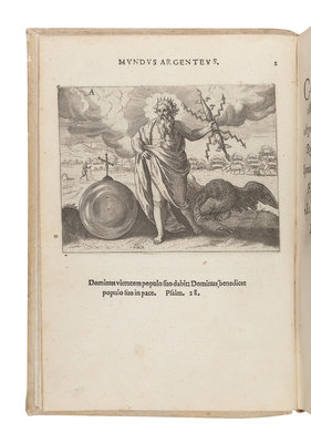 4to. Engraved title and 74 engraved emblems by G. de Jode. (Lower portion of title-page cut away below engraving [with loss of imprint?], some minor pale spots, lower blank margins of G2 and G3 torn away.) Contemporary vellum gilt; morocco folding case.