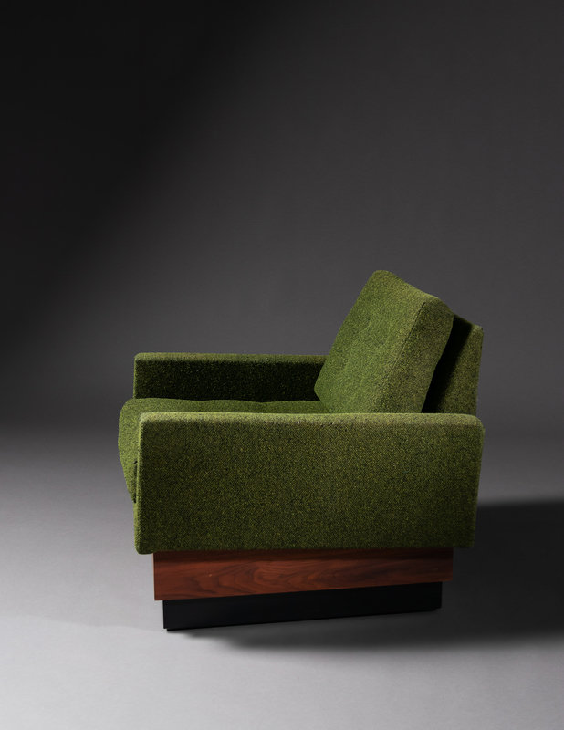 wool blend upholstery, walnut, lacquered walnut