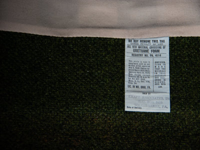 manufacturer's paper label to seat cushion