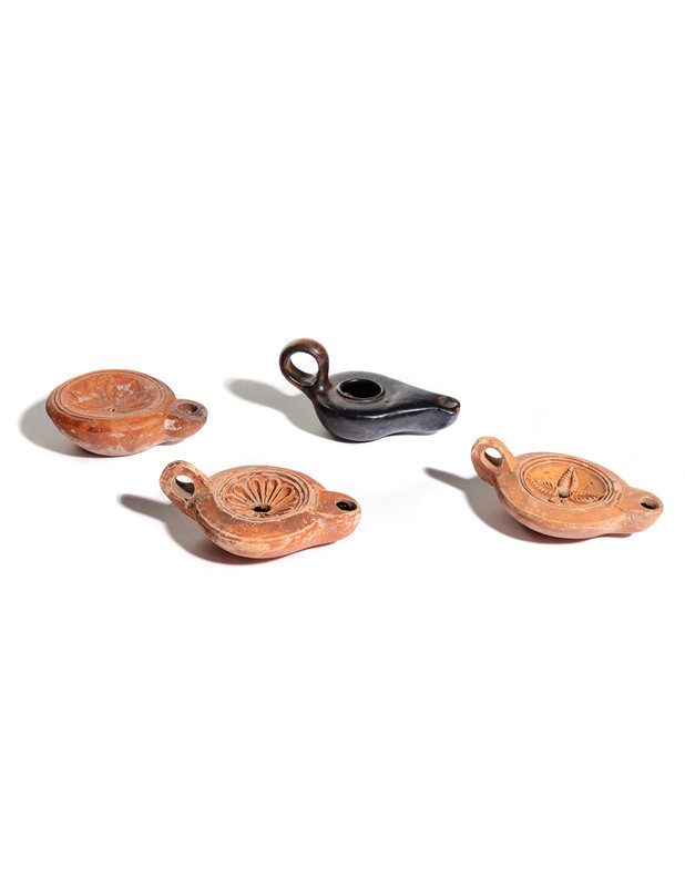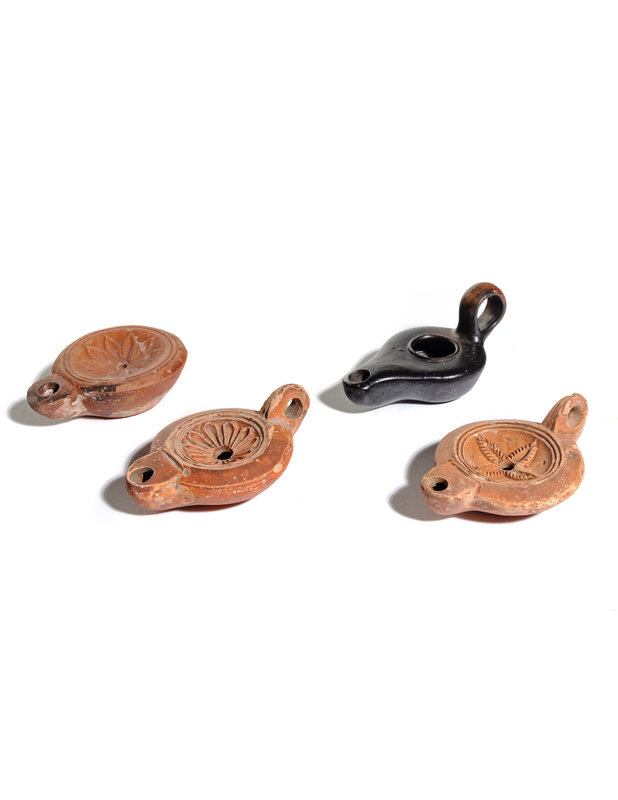 Four Roman Molded Terra Cotta Oil Lamps