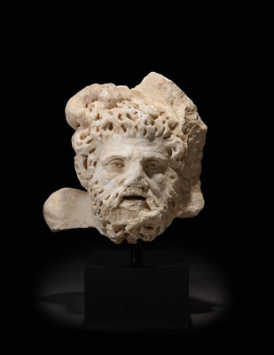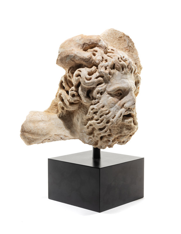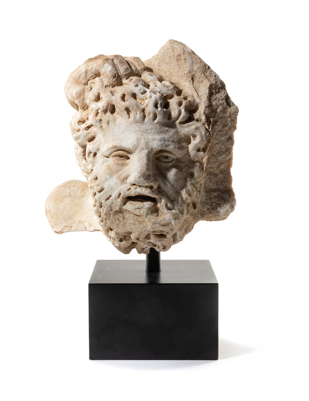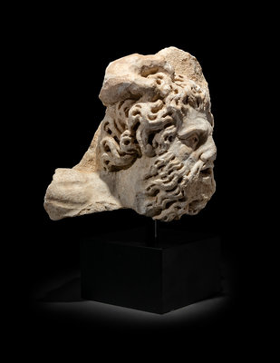 A Roman Marble Bearded Head, Perhaps a Giant, from a Relief
