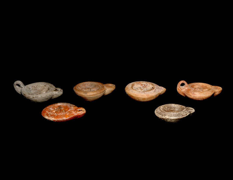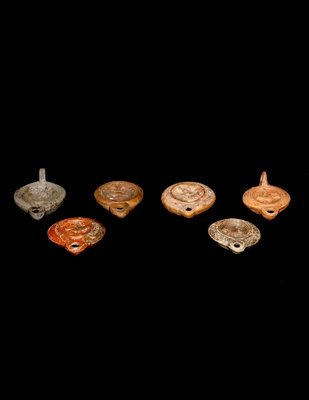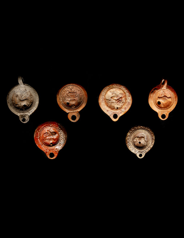 one depicting an erotic scene, one a horse, one an urn, and three others.