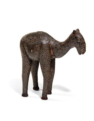 A Bone, Metal and Mother-of-Pearl Inlaid Camel