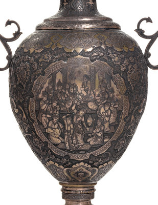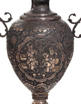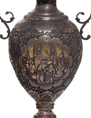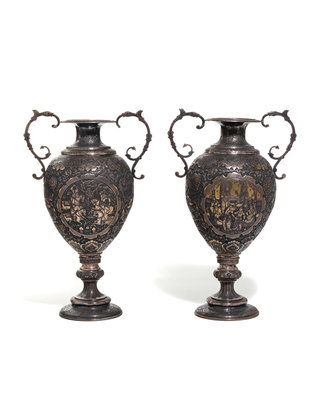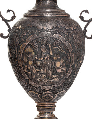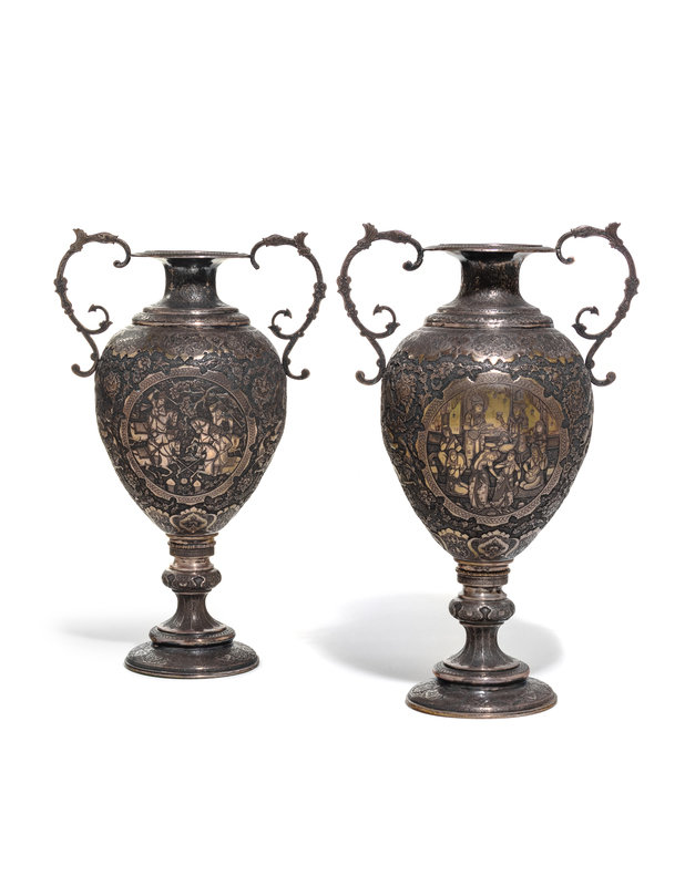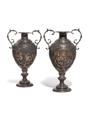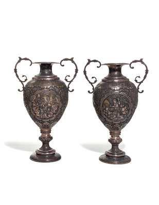 A Pair of Persian Silvered Copper Vases