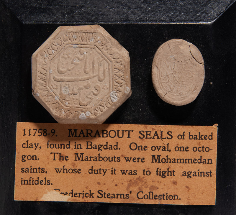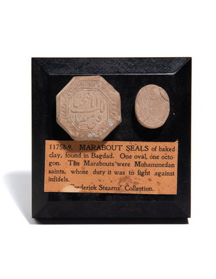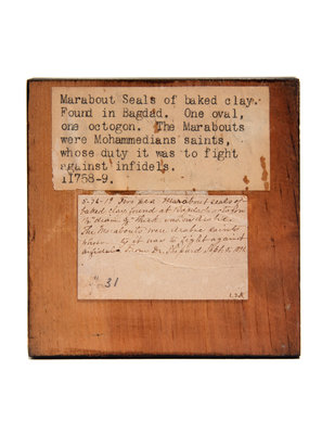 Two Islamic Pottery Turbahs or Seals Mounted on a Plaque