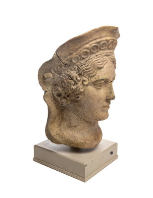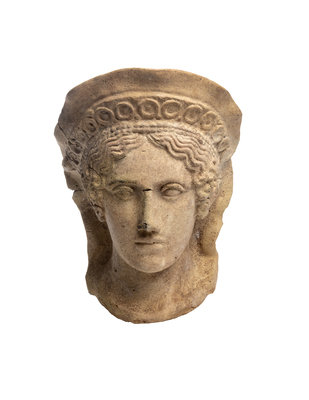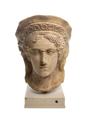 An Etruscan Terra Cotta Votive Head of a Veiled Woman