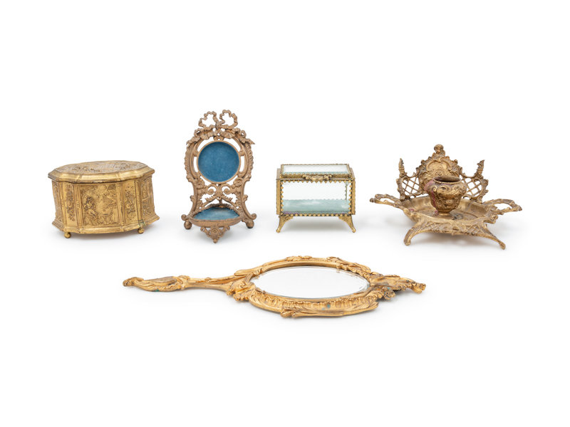 Five Continental Gilt Metal Vanity Articles