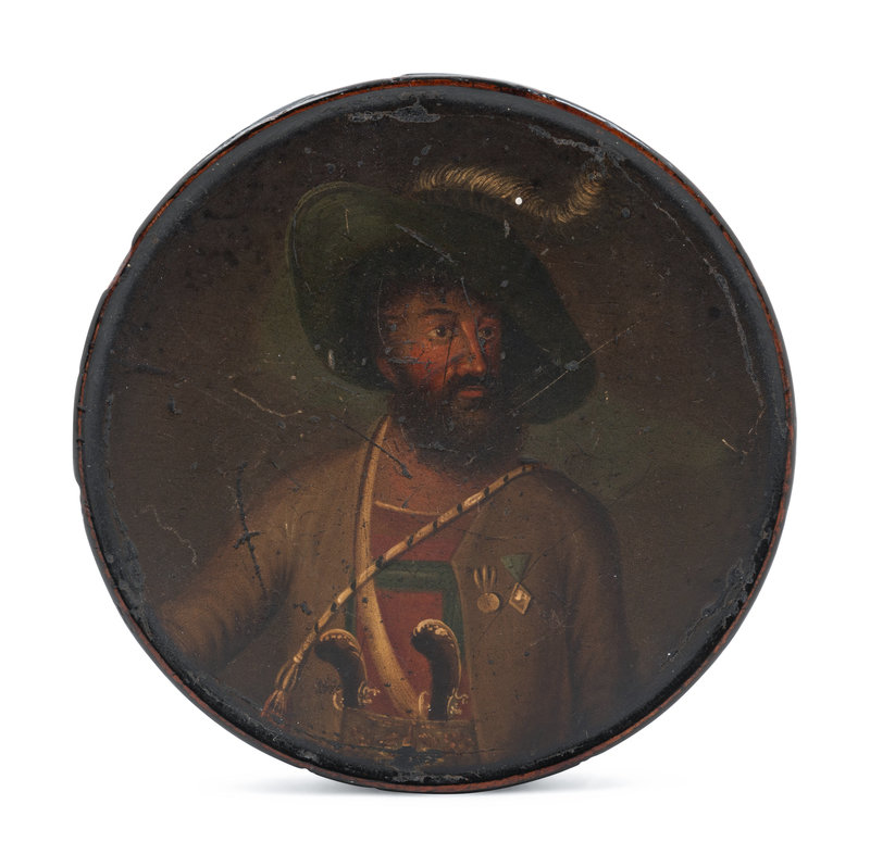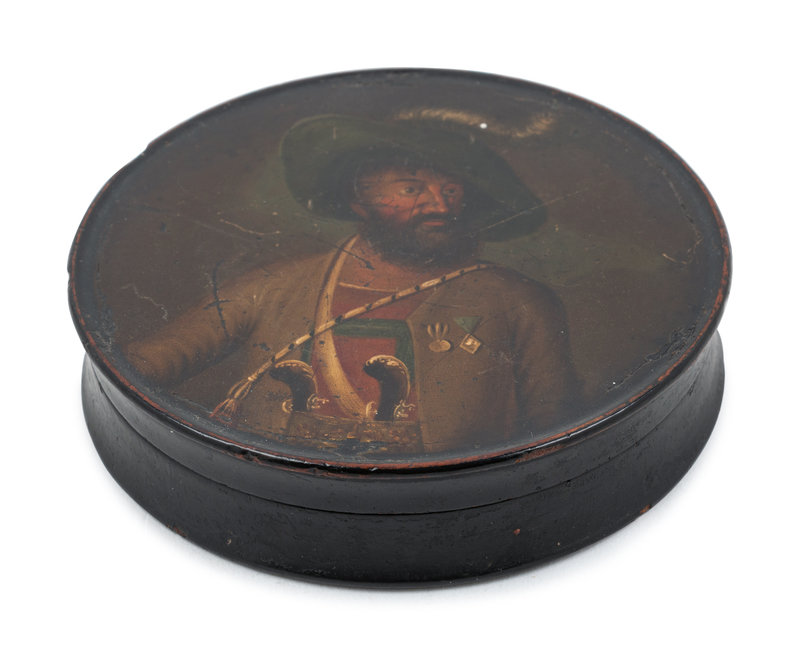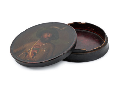 the lid with a portrait of a man in uniform.