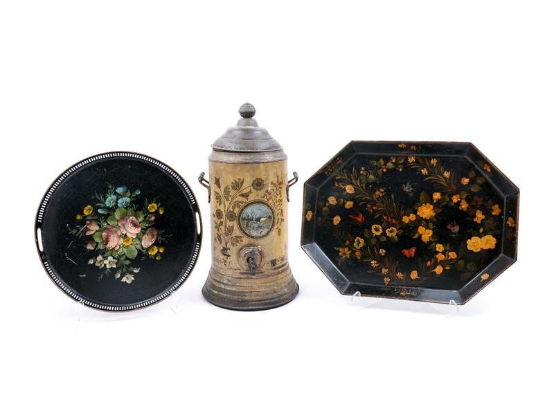 comprising an Adams & Westlake Co. drink dispenser and two serving trays.