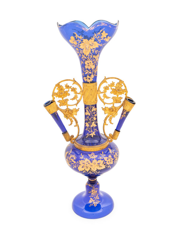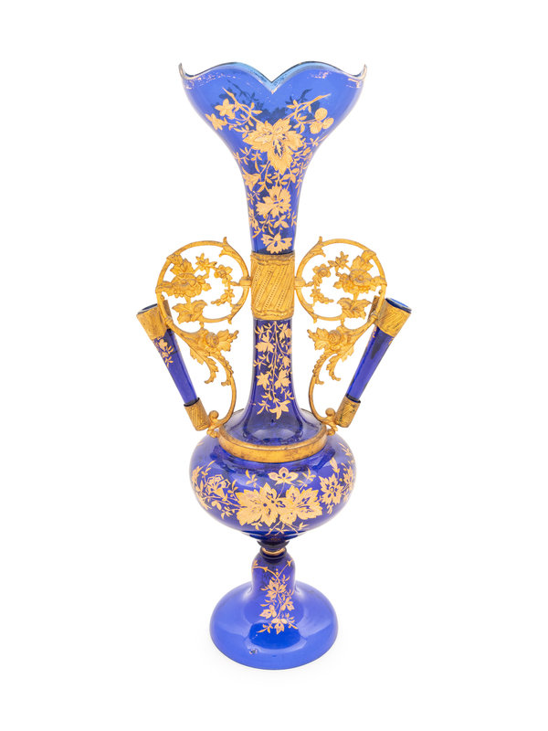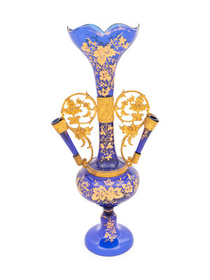 A Victorian Gilt Decorated Cobalt Glass Vase