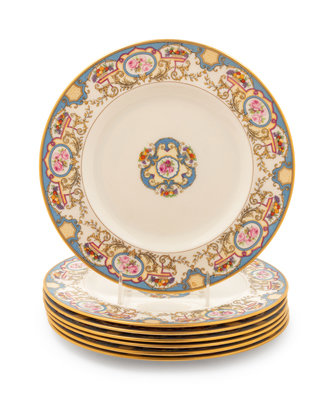 A Set of Seven Morgan Belleek Plates