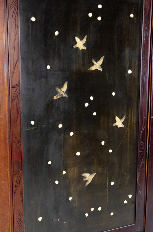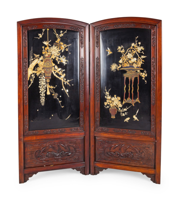 A Chinese Lacquered and Hardstone Inset Two-Panel Floorscreen