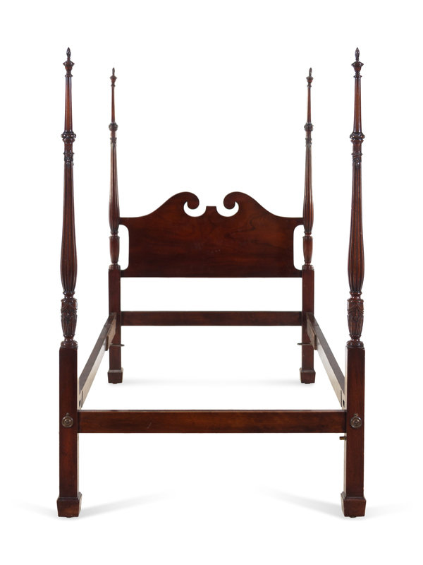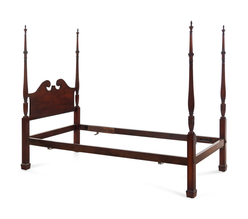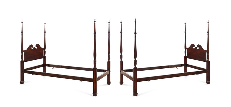 A Pair of Chippendale Style Carved Mahogany Four Post Tested Twin Beds