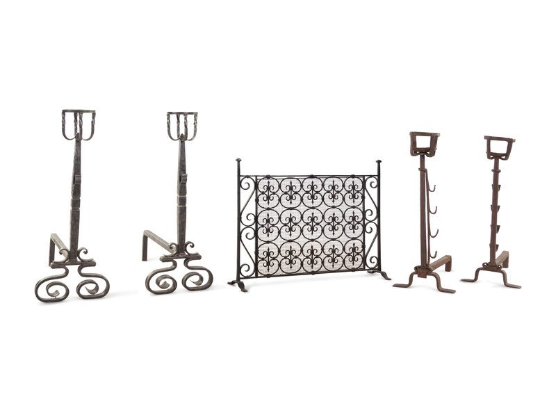 Two Pairs of Metal Fireplace Andirons