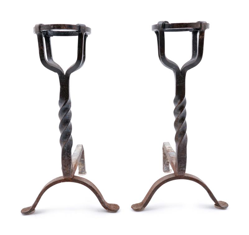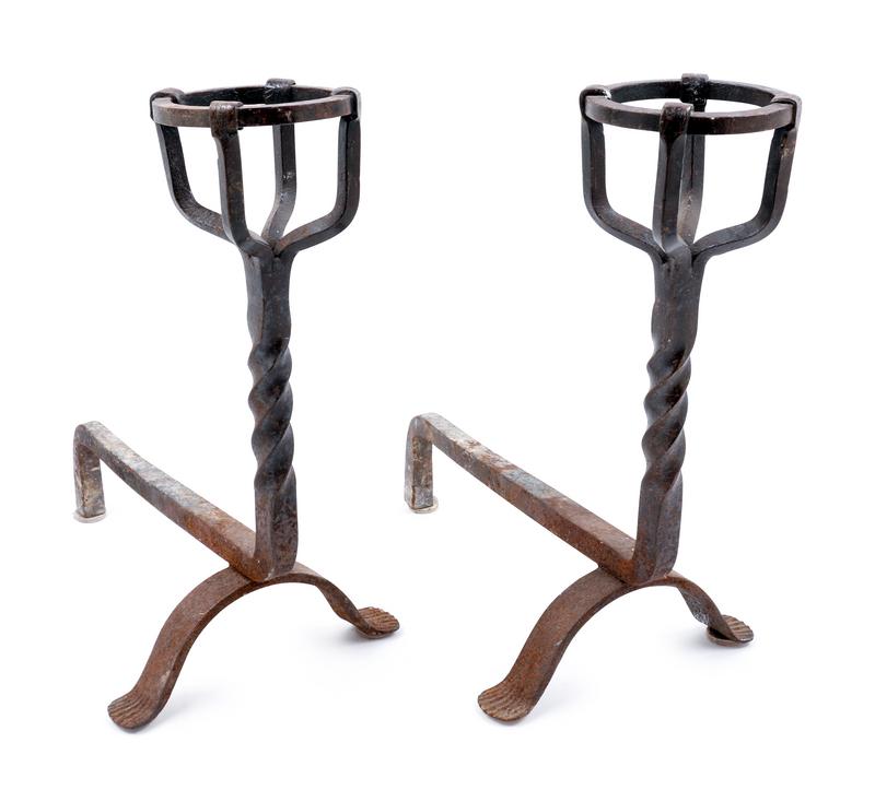 A Pair of Renaissance Revival Wrought Iron Andirons