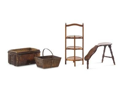 comprising a shoe-shine stool, two boxes and a three-tiered plate stand.