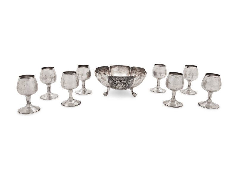 A Set of Eight Mexican Silver Cordials