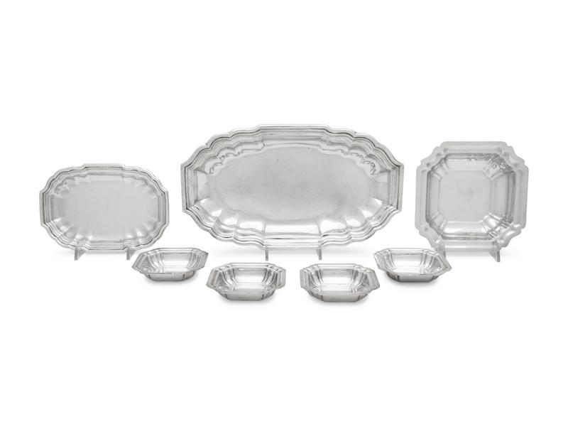 comprising a set of four salt cellars, a bread dish and two other dishes.