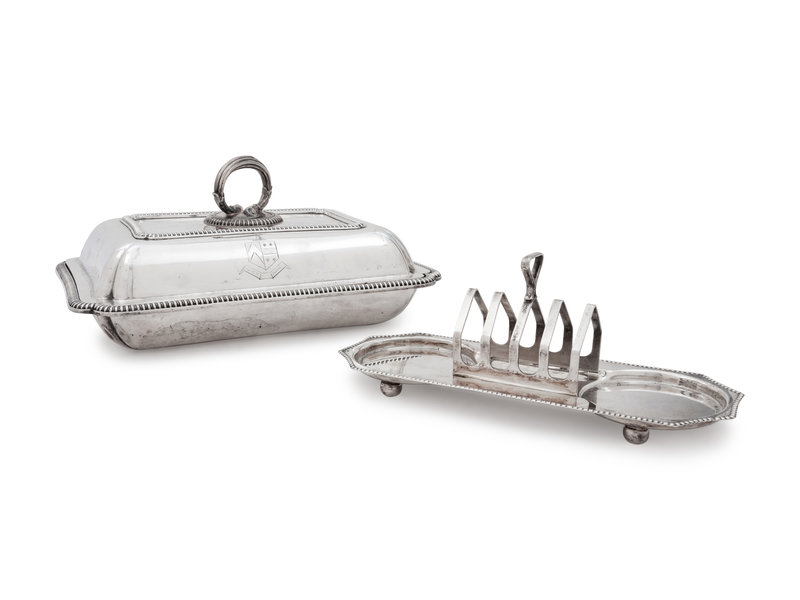 together with a silver-plate toast rack.