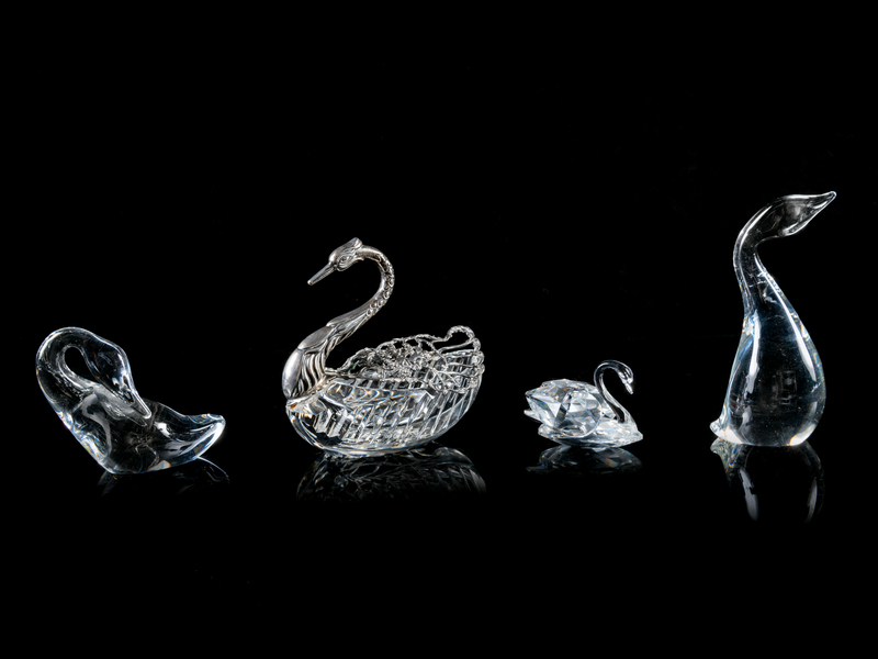 together with an unsigned silver-mounted example and an associated unsigned cut-glass example.