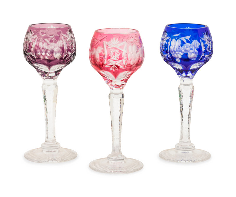 A Set of Twelve Bohemian Cut-to-Clear Colored Glass Cordials