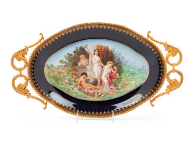 A Gilt Metal Mounted Sevres Style Porcelain Tray