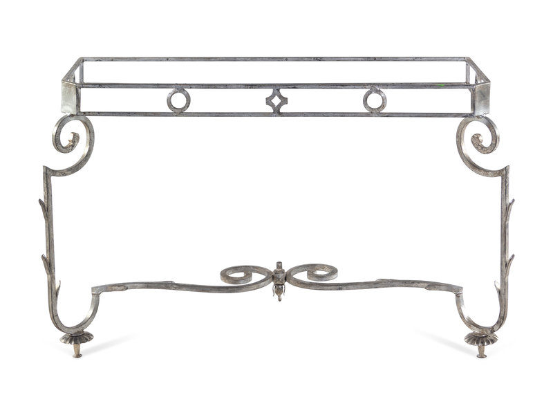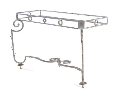 A Silvered Wrought Metal Console Table Base After Gilbert Poillerat