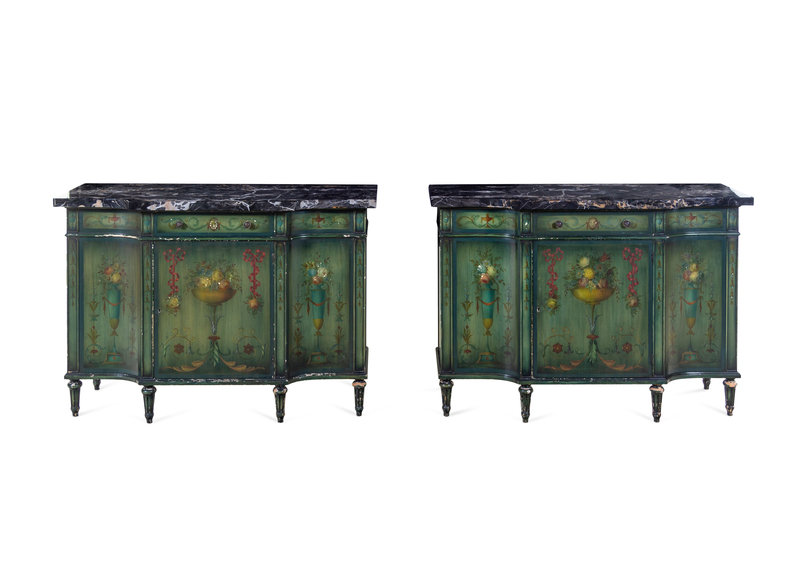 A Pair of Italian Style Painted Console Cabinets