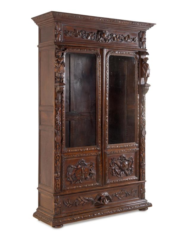 A Dutch Baroque Revival Carved Oak Cupboard