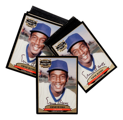 inscribed ('Ernie Banks") in black Sharpie on front of cards.