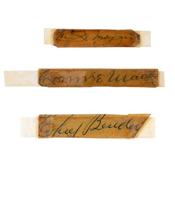 A Group of Hall of Fame Baseball Signed Cuts (Chief Bender, Joe DiMaggio, Connie Mack)