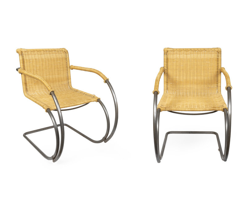 A Pair of Mies Van Der Rohe Cantilever Model MR 20 Chairs
