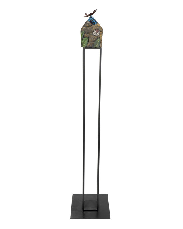 Height 67 inches; height of house 9 1/2 x width 5 3/4 x depth 5 3/4 inches.
