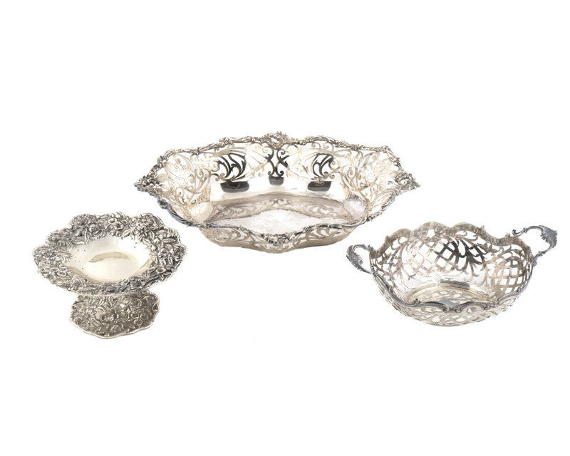 largest marked Bailey, Banks and Biddle, compote marked S. Kirk & Son, the basket mark is rubbed;