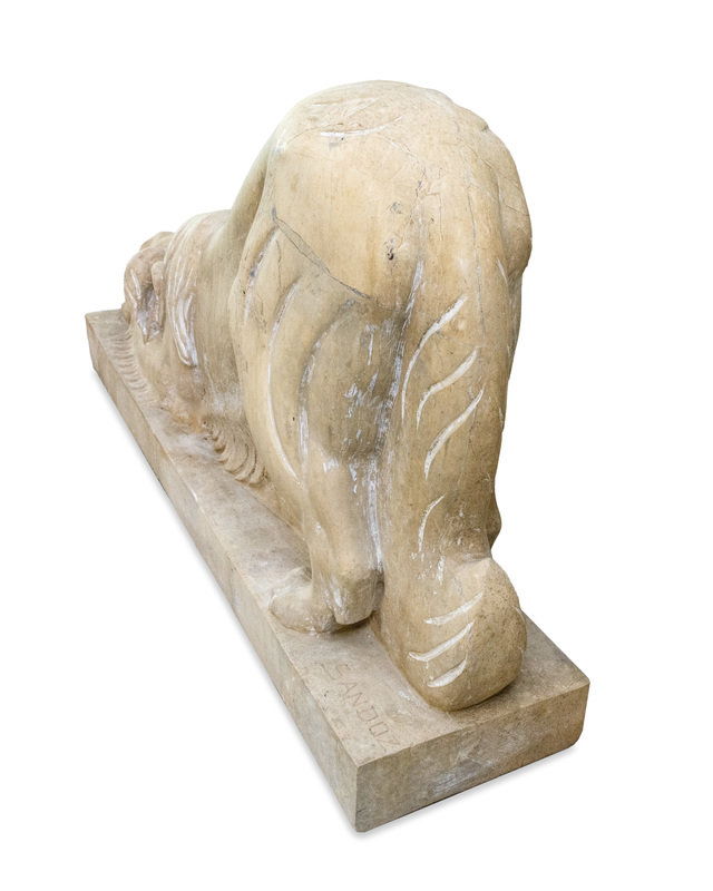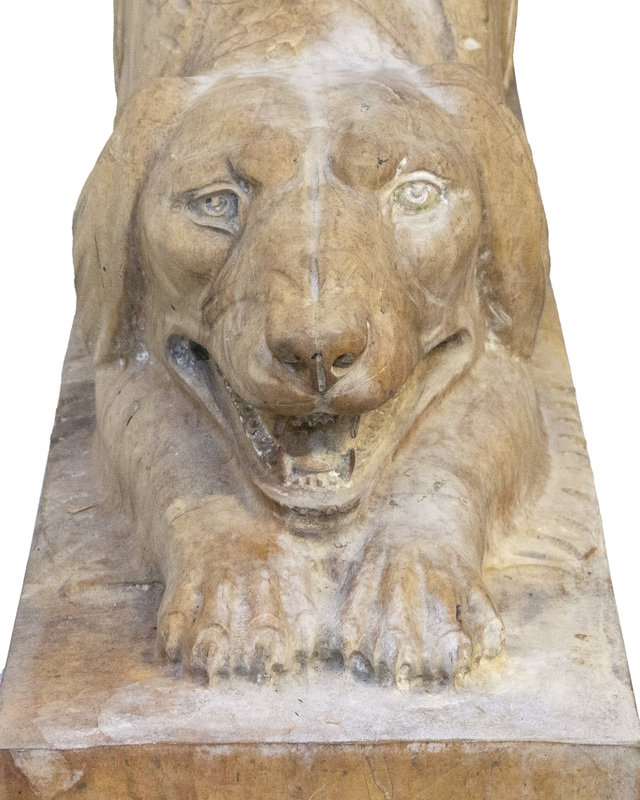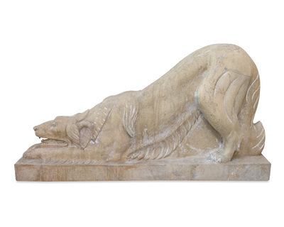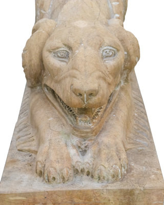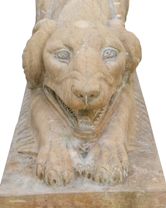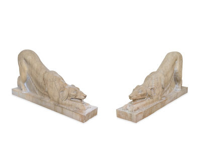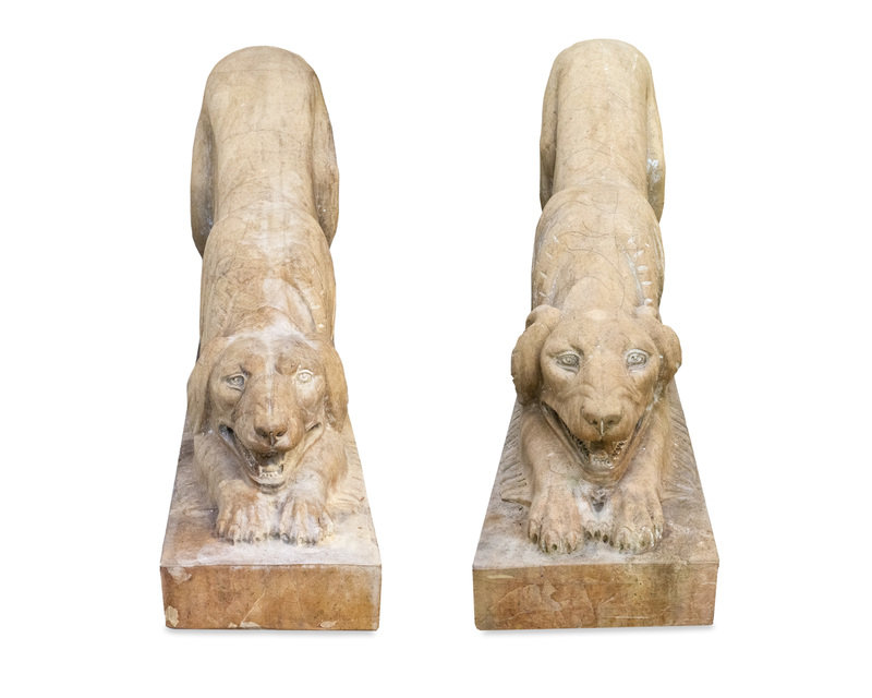A Pair of Carved Marble Crouching Dogs