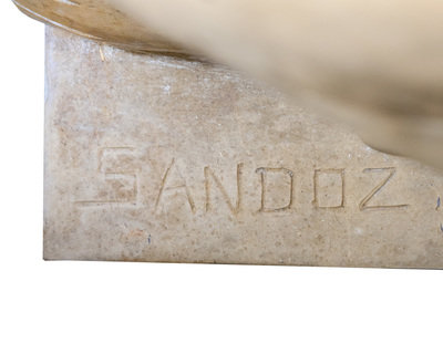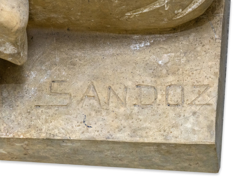 signed "SANDOZ" on the rectangular plinth base.