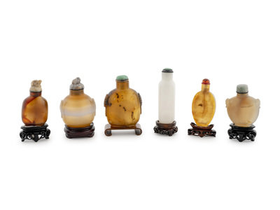 A Group of Six Chinese Hardstone Snuff Bottles