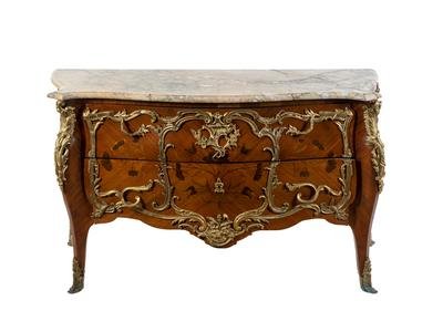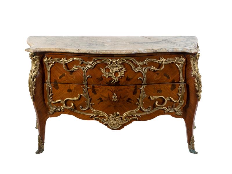 A Louis XV Style Gilt Bronze Mounted Kingwood and Marquetry Commode
