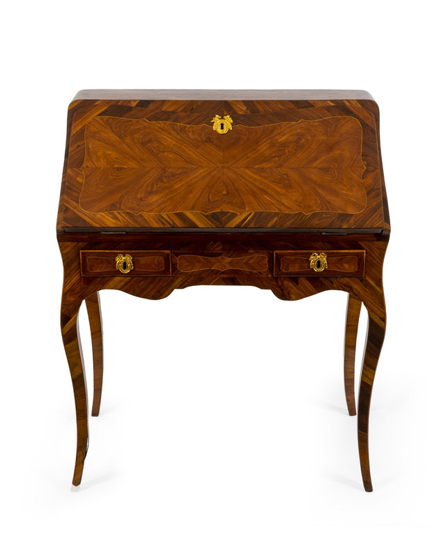 A Louis XV Gilt Bronze Mounted Tulipwood, Amaranth and Rosewood Bureau en Pente