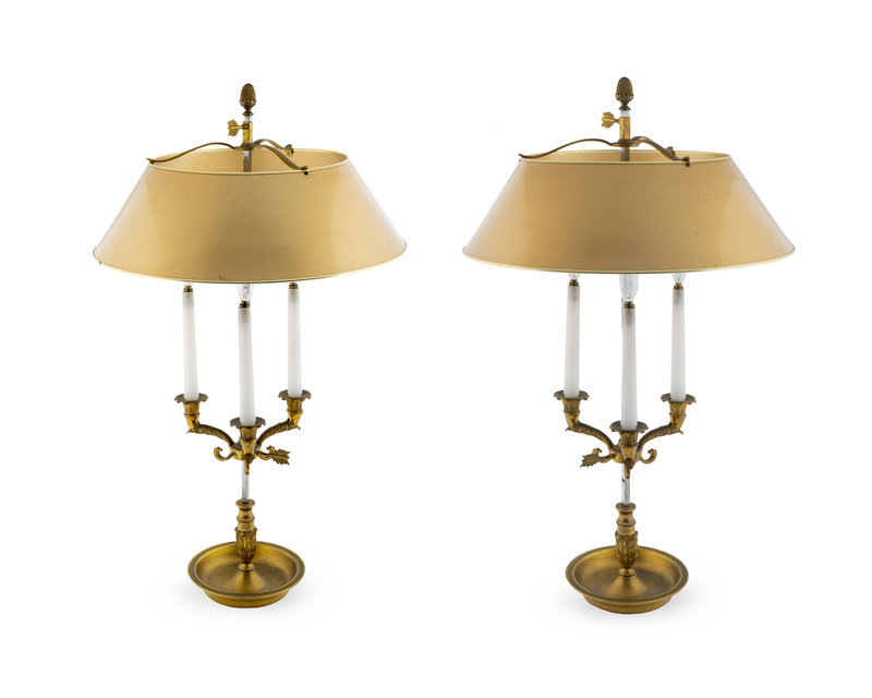 A Pair of Empire Style Gilt Metal Bouillotte Lamps