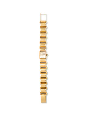 17.00 x 15.00 mm case dimensions, matte silvered dial signed ETERNA, gold baton and Arabic numerals, gold pencil hands, snap on case back, manual wind movement signed ETERNA, domed link bracelet, fold over clasp.