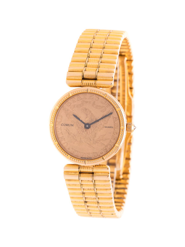 CORUM, YELLOW GOLD AND US $5 COIN WRISTWATCH