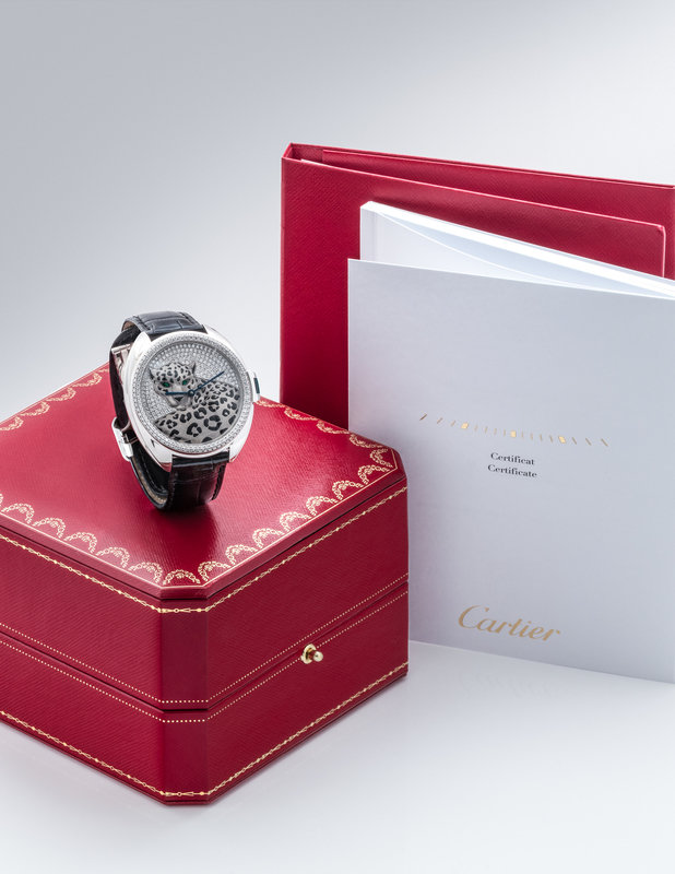 CARTIER, 18K WHITE GOLD AND DIAMOND REF. HP101017 'CLÉ DE CARTIER PANTHER DECOR' WRISTWATCH