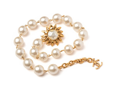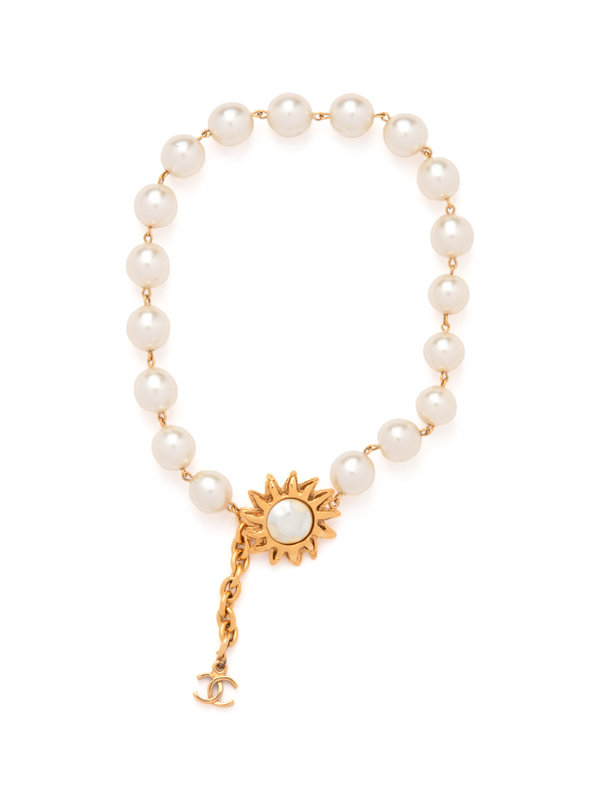 Chanel Large Faux Pearl Necklace with Gold Flower, Early 1980s