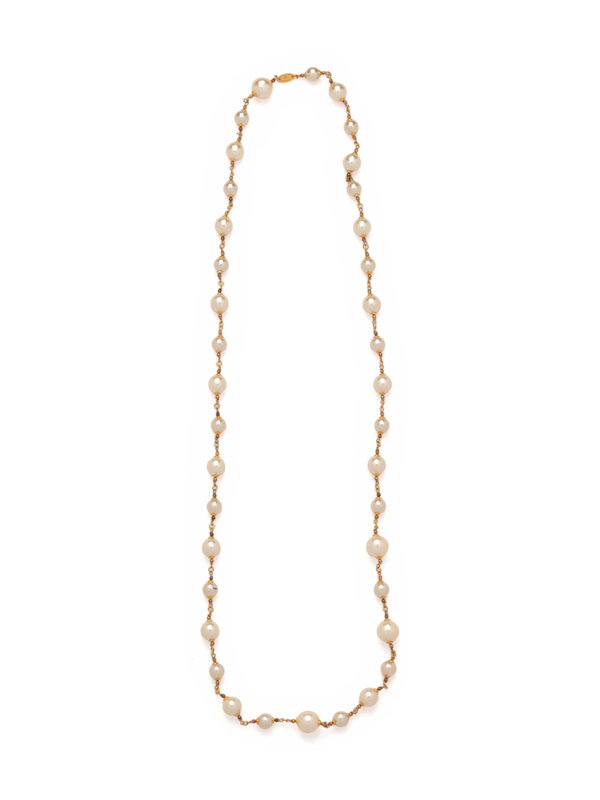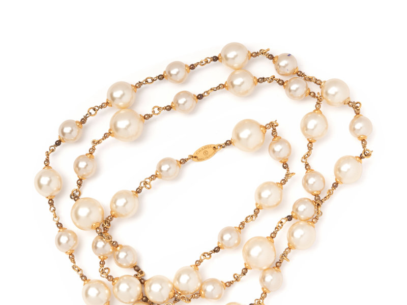 Chanel Goldtone Long Chain Pearl Necklace, Early 1980s